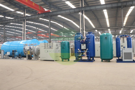 1:现场氧气制备系统是根据PSA变压吸附或VPSA原理,利用沸石分子筛独特的性能,从空气中分离出廉价的氧气。具有流程简单、结构紧凑、占地面积小、操作简便、随开随用、制氧成本低、安全可靠、耗电少、氧气纯度可调、产气压力高等显著特点,是一种理想的利用空气为原料制取氧气的空分设备。主要设备组成(PSA)螺杆空气压缩机,压缩空气储气罐,CTAH精密过滤器,组合式干燥机,PSA制氧吸附塔,氧气纯度分析及PLC控制系统,自动排水系统,工艺氧气储气罐等组成。我们的制氧产品特点,设备运行稳定,氧气产量压力恒定,浓度90-93%,露点<-60°,设备配置高,空压机主机选用台湾汉钟,电机建议选用变频控制,有效降低运行成本,制氧分子筛选用美国合资霍尼韦尔(Honeywell)UOP分子筛,吸附效率高,正常可以保证3-5年无需更换,日常维保费用低。电磁阀等主要元器件选用台湾亚德客或等同质量,保证设备的稳定连续运行。减压阀组选用日本进口SMC,精密过滤器和冷冻干燥机选用瑞典阿特拉斯.科普柯集团Atlascopco旗下纽曼泰克Pneumatech,能耗低,制冷效率高,配备氧分析仪,德国西门子PLC和显示屏控制,实时显示控制,并可以同步远端上传实现智能远程控制。